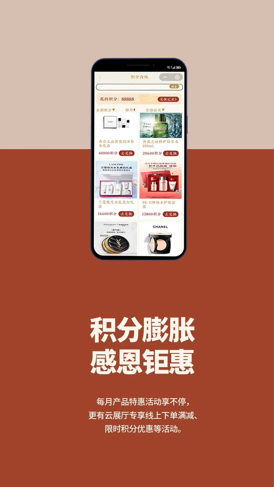 為答謝廣大客戶朋友長久以來的鼎力支持與厚愛,【明豐云展廳】特別推出積分免費兌禮機制。客戶在【明豐云展廳】下單、打卡、觀看直播或參與活動時,均可獲得相應積分獎勵。